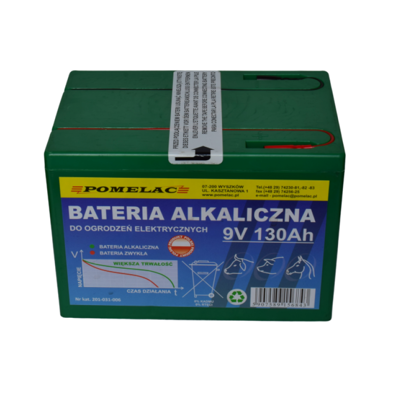 Batéria alkalická 9V 130Ah pre napájanie slabších elektrických ohradníkov.