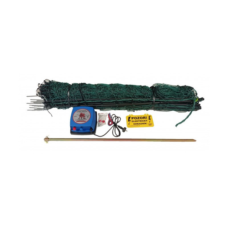 - elektrifikovanú sieť pre hydinu 112cm/ 25m s dvoma špicami, 9 x stĺpik, farba zelená
